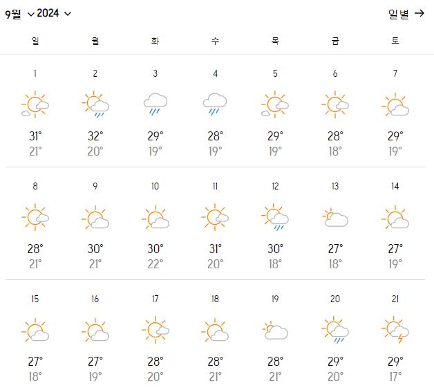 이미지를 클릭하시면 남은 날짜 날씨도 확인이 가능합니다.