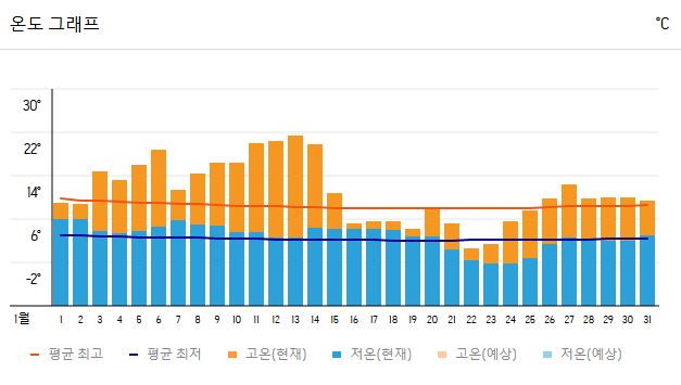 2. 중국 장가계 1월 날씨 - 기온 변화는?