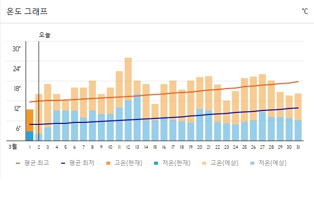 2. 장가계 3월 날씨 온도변화
