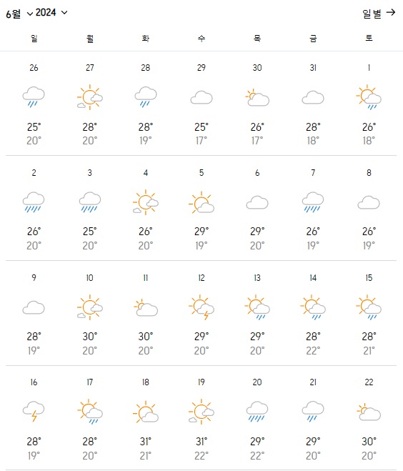 이미지를 클릭하시면 6월 전체 날씨 확인이 가능합니다.