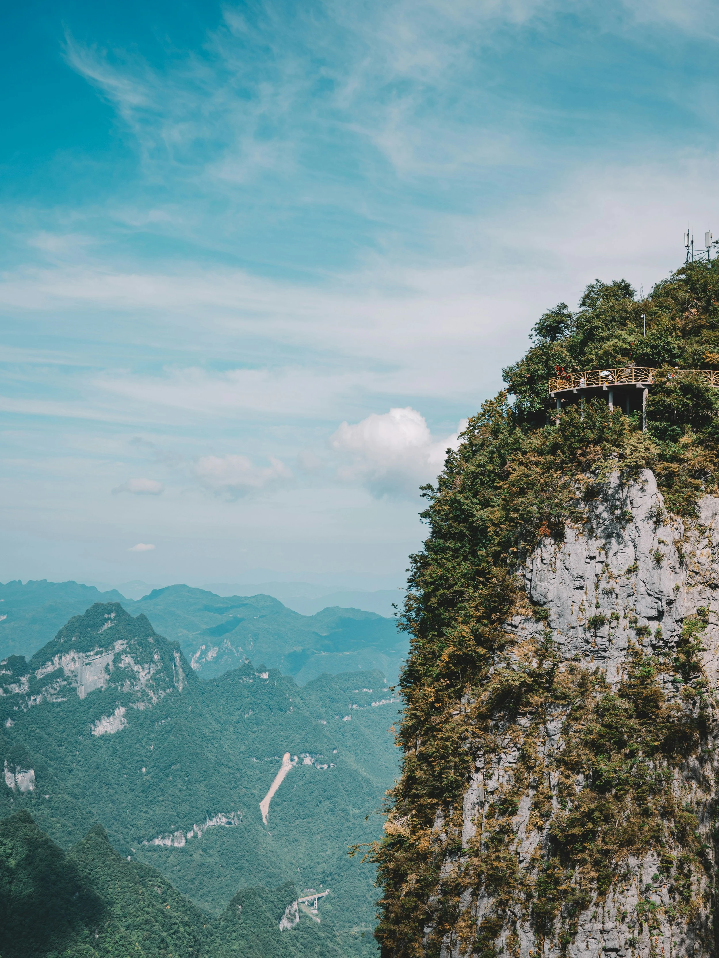 맑은 하늘은 우뚝 솟은 사암 기둥의 초현실적인 아름다움을 더욱 돋보이게 하며 모험을 위한 그림 같은 배경을 만들어줍니다. 장가계 대협곡(Zhangjiajie Grand Canyon)의 유리 다리를 따라 순항하든, 바오펑 호수(Baofeng Lake)의 고요함에 푹 빠져든, 맑은 날은 장가계의 경이로운 자연의 매력을 더욱 증폭시킵니다.