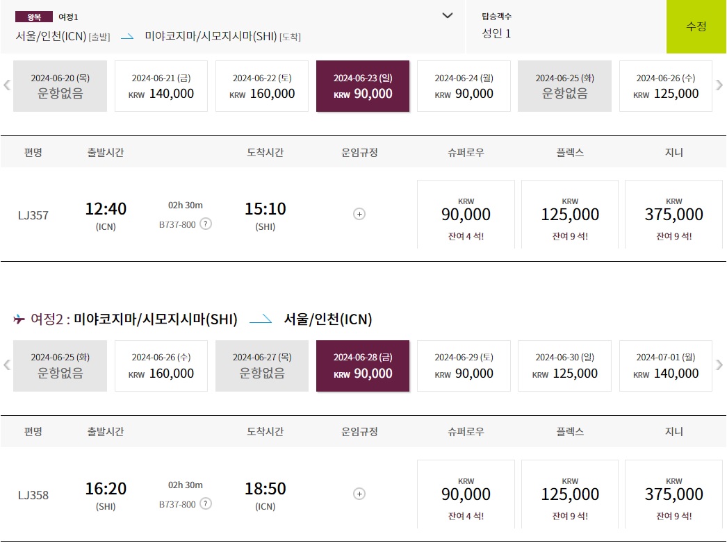 2. 미야코지마 비행시간 , 시간표 , 가격