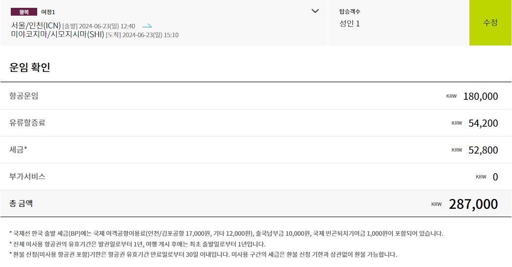 물론 유류할증료나 세금등이 붙이면, 1인당 총액은 약 28~29만원 수준입니다. 옛날 일본 항공권 생각하면 비싼편이지만, 요새 항공권 가격들이 다 올라서 저 정도면 나쁘지 않은것 같네요.