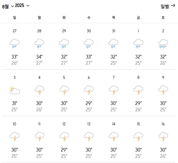 | 평균 낮 최고 기온 | 30~32℃ |