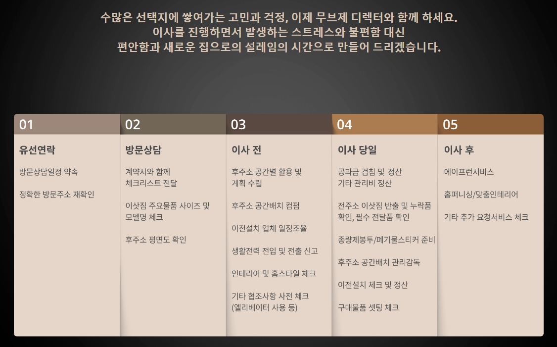 VIP 전담 디렉터가 파견되어 고객이 직접 신경 쓰지 않아도 저 대신해서 이사를 신경 써주는 서비스입니다.