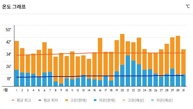 | 자주 나타나는 최고 기온 | 36~40℃ |