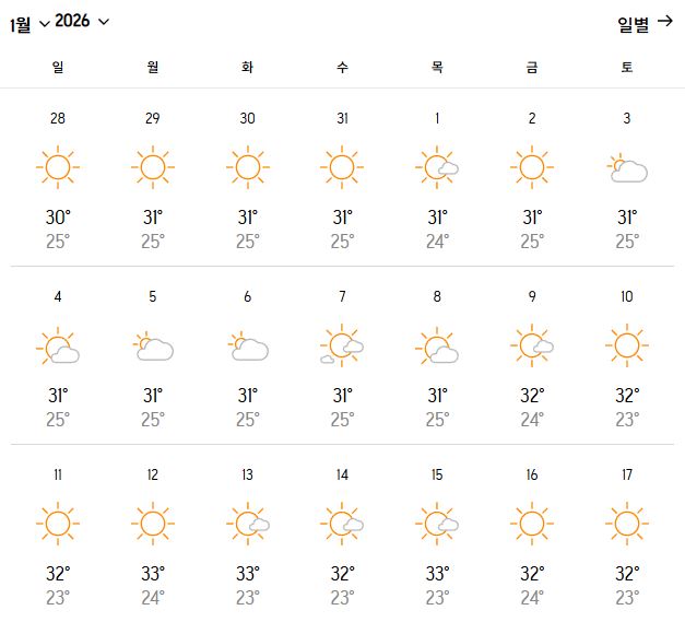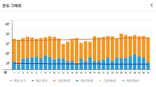 | 낮 최고 기온 | 31~33℃ |