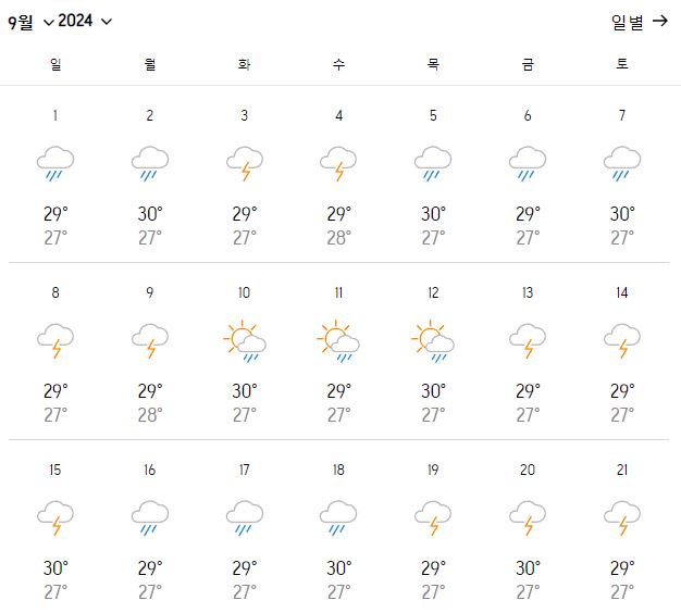 2. 필리핀 보라카이 9월 날씨 온도 변화는?