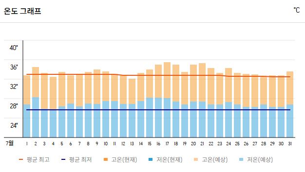 | 평균 낮 최고 기온 | 32~35℃ |