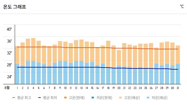 | 평균 낮 최고 기온 | 32~34℃ |