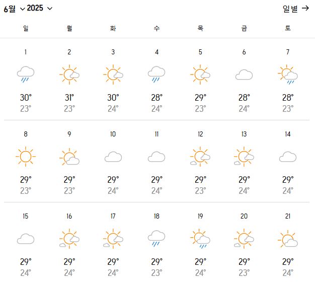 이미지를 클릭하시면 남은 날짜 날씨도 확인이 가능합니다.