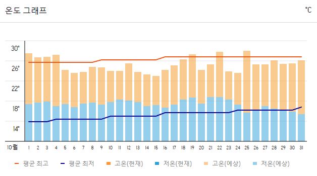 2. 호주 브리즈번 10월 날씨 온도변화는?