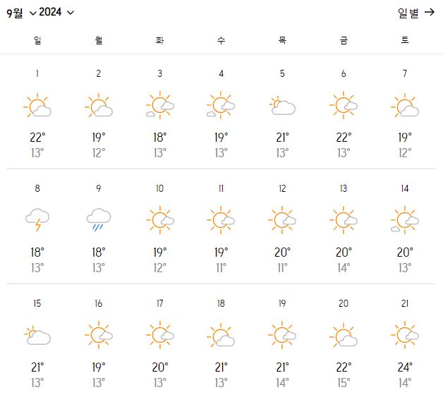 2. 호주 시드니 9월 날씨 온도 변화는?
