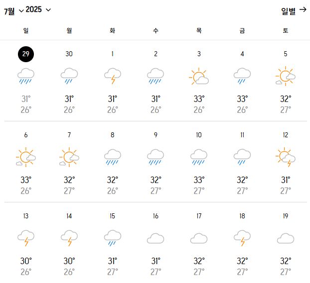 | 평균 밤 최저 기온 | 27~29℃ |