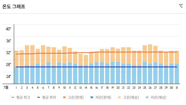 | 평균 낮 최고 기온 | 32~34℃ |
