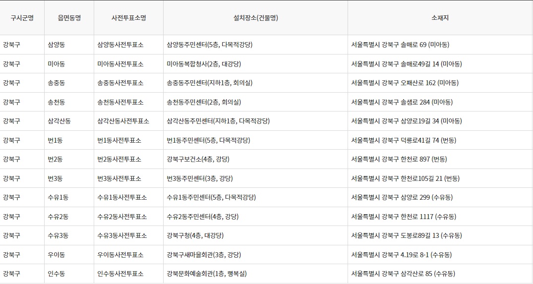 2024 총선 제 22대 국회의원 선거 사전투표소 - 서울특별시 강북구
