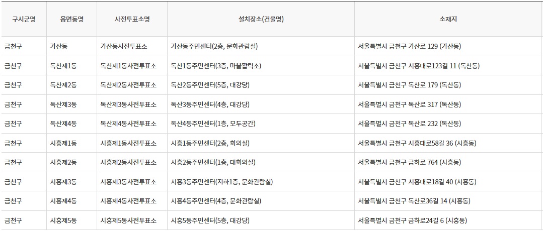 제 22대 국회의원 선거 사전투표소 - 서울특별시 금천구