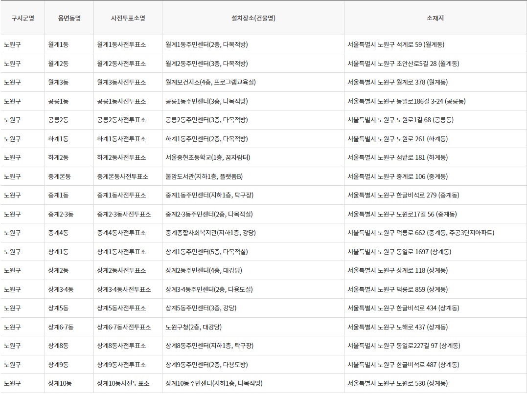 제 22대 국회의원 선거 사전투표소 - 서울특별시 노원구