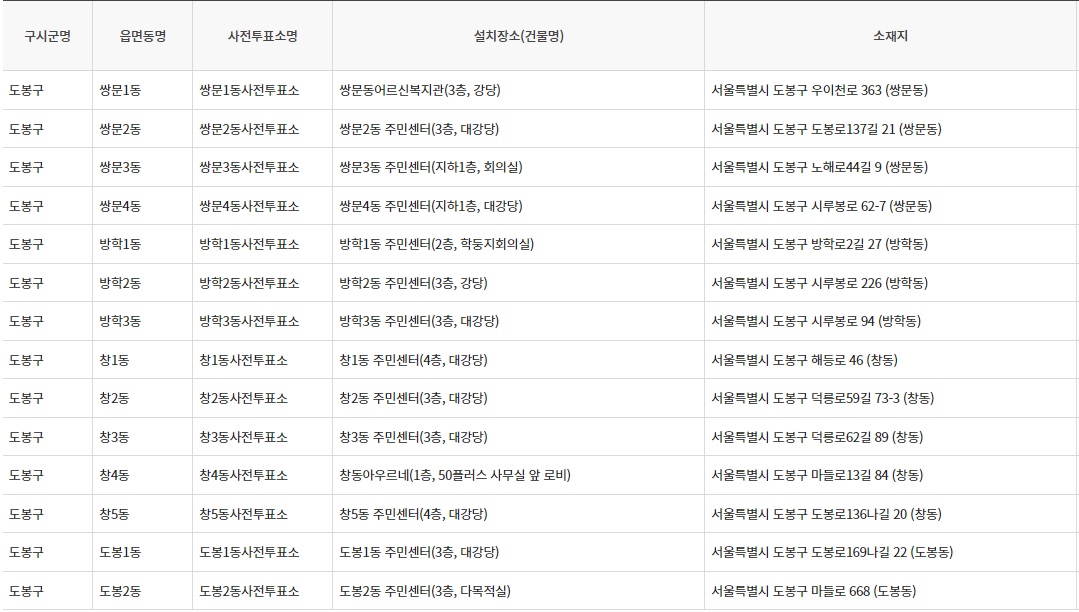 2024 총선 제 22대 국회의원 선거 사전투표소 - 서울특별시 도봉구