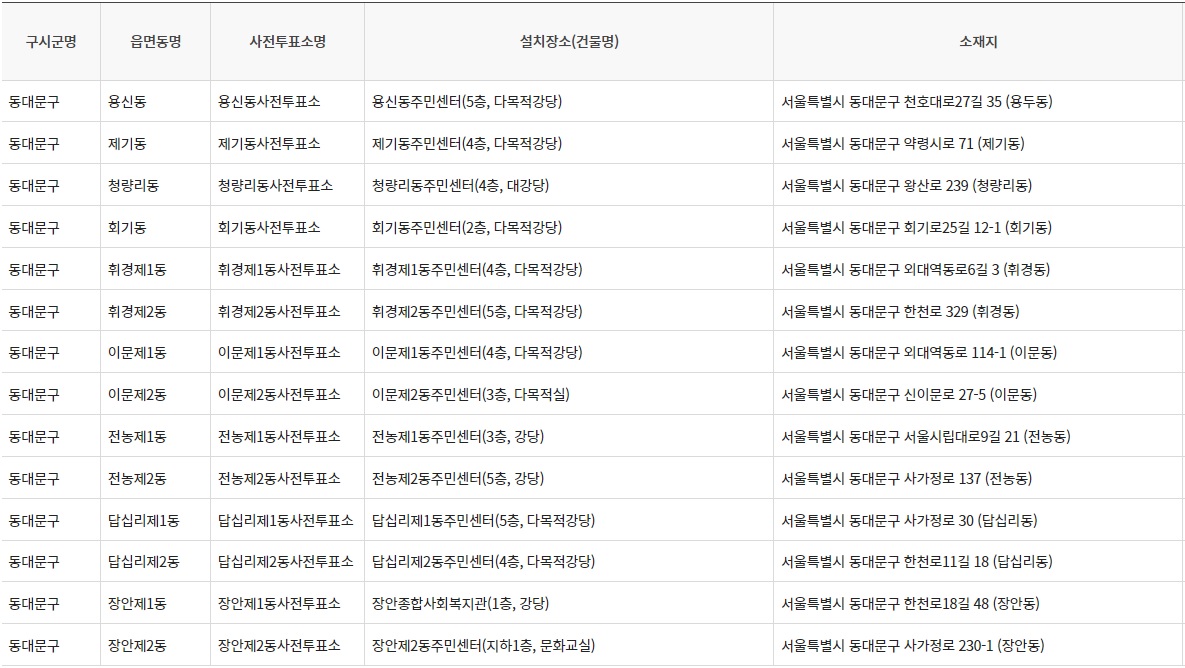 제 22대 국회의원 선거 사전투표소 - 서울특별시 동대문구