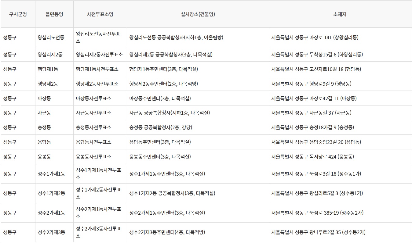제 22대 국회의원 선거 사전투표소 - 서울특별시 성동구