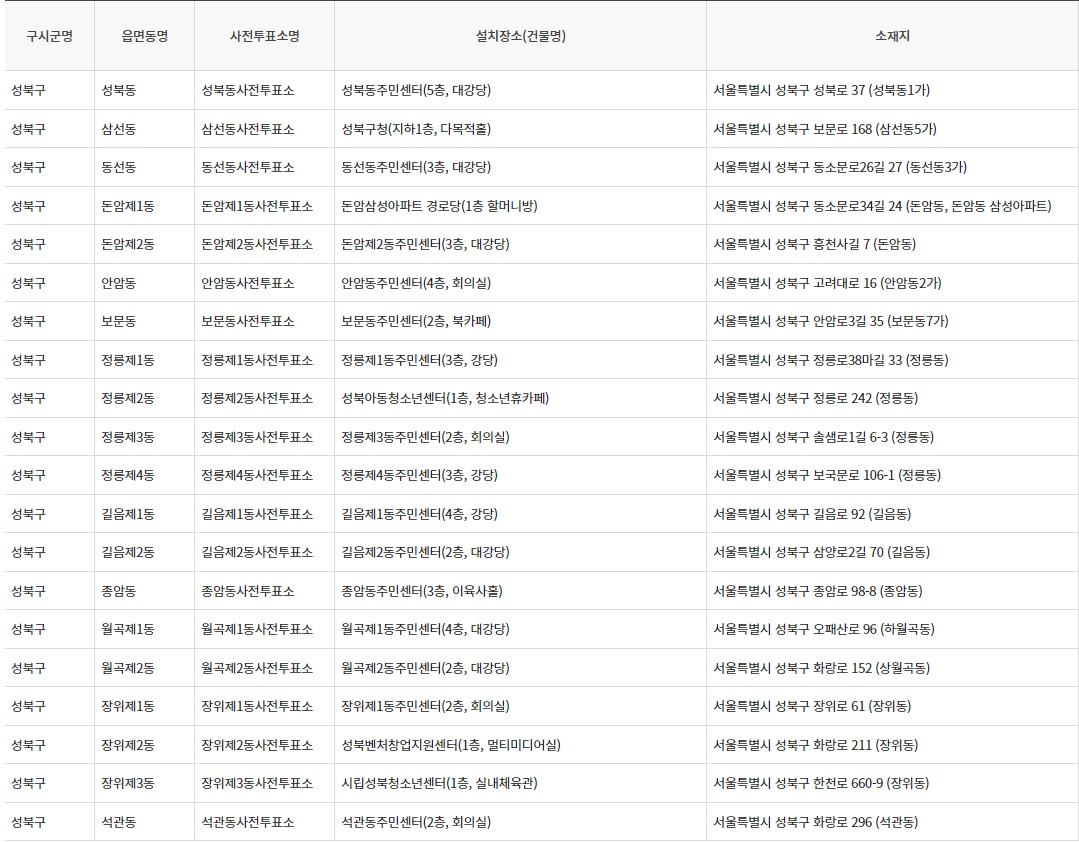 2024 총선 제 22대 국회의원 선거 사전투표소 - 서울특별시 성북구