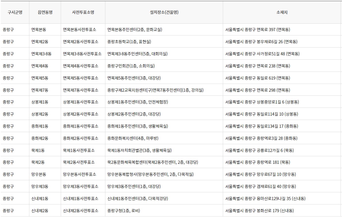 2024 총선 제 22대 국회의원 선거 사전투표소 - 서울특별시 중랑구