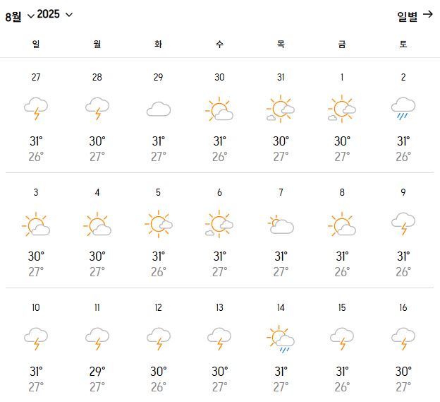 - 태풍 위험: 8월은 태풍·열대 저기압 영향이 있을 수 있음