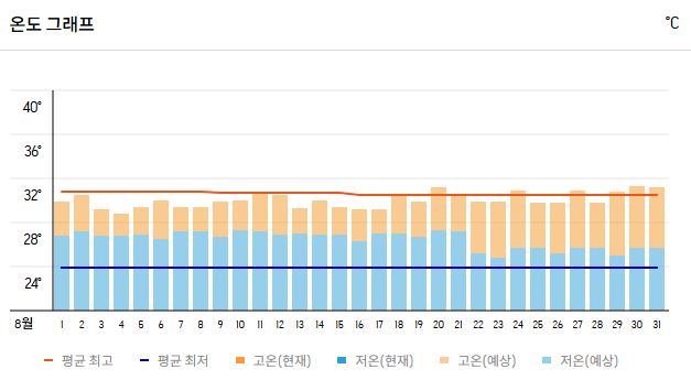 | 평균 낮 최고 기온 | 31~33℃ |