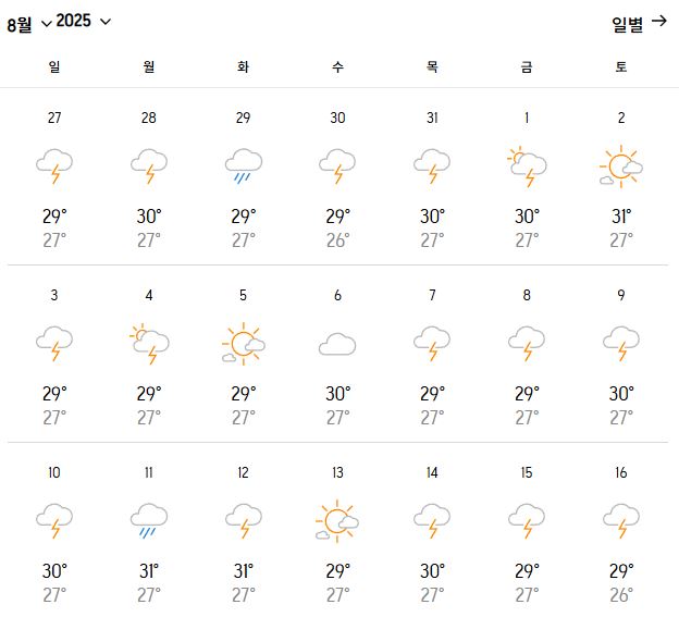 | 일 평균 기온 | 28~29℃ |