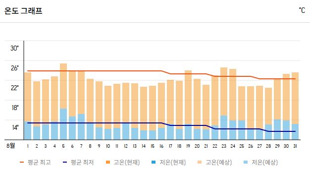 아침저녁으로는 서늘하지만, 낮에는 반팔로 충분히 활동하기 좋은 날씨입니다.