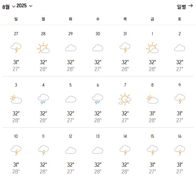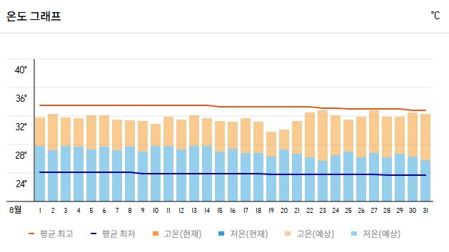 | 최고 기온 | 31–35°C |