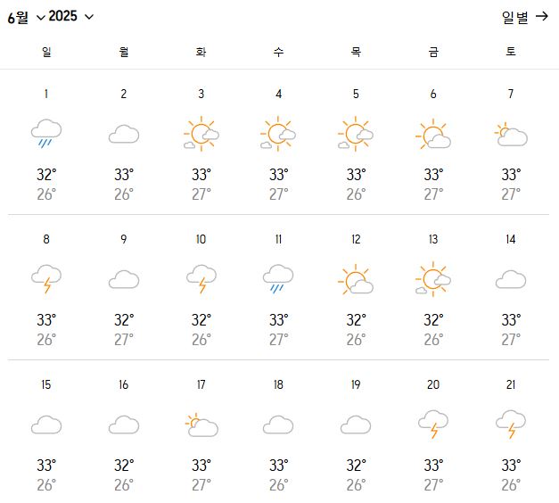 방콕 6월은 우기가 시작되며 비가 잦아지는 시기이지만, 여전히 낮에는 햇볕이 강하고 관광하기 좋은 날도 많습니다. 날씨 예보를 참고해 일정 조율을 잘하고, 방수 아이템과 통기성 좋은 옷차림만 갖추면 충분히 즐거운 여행이 가능합니다.