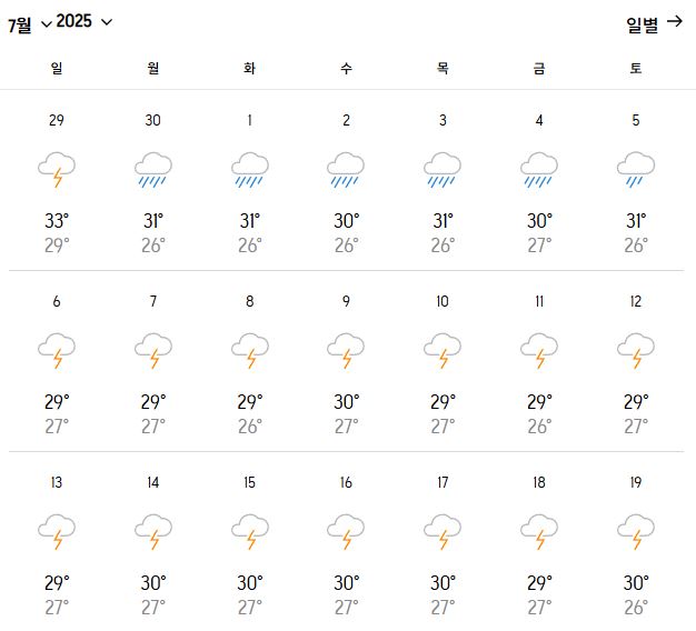 아래 버튼을 클릭하시면 2025년 7월 푸꾸옥 날씨 상세 예보를 확인하실 수 있습니다.