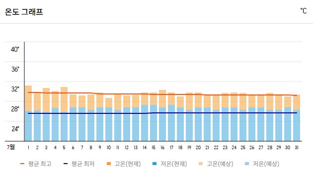 | 체감 온도 | 33~36℃ (높은 습도) |