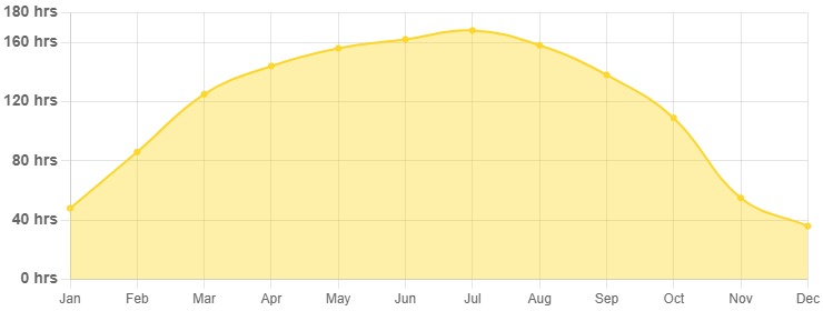 - 일조 시간: **약 6~7시간** (구름이 많은 날도 많음)