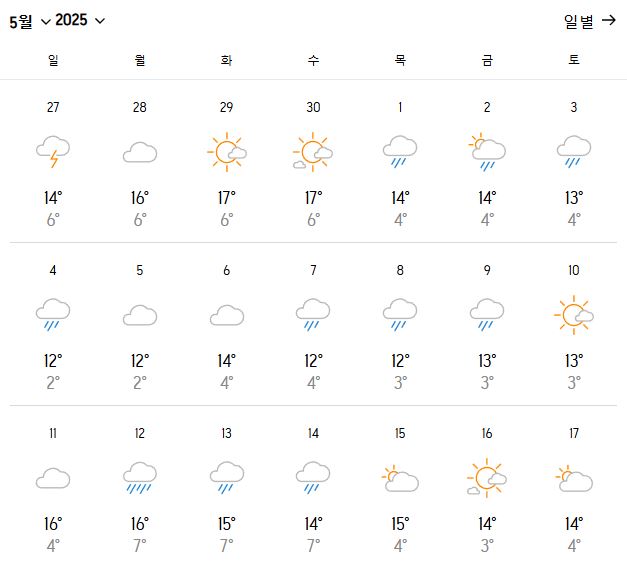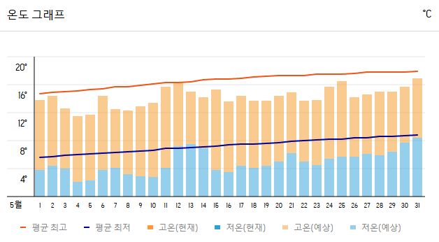 | 최고 기온 | 15~18℃ |