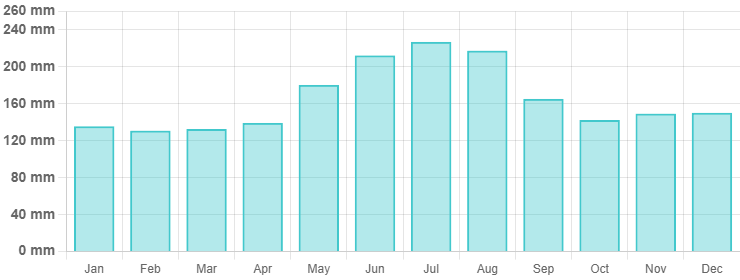 | 강수량 | 120~160mm (비 오는 날 12~14일) |
