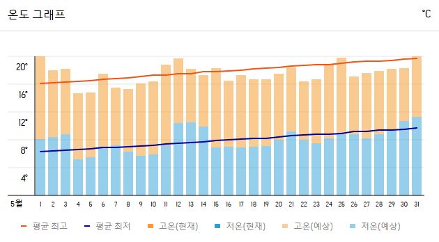 | 최고 기온 | 20~22℃ |